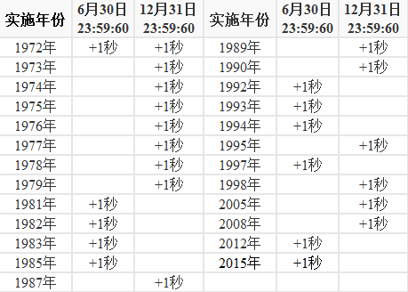 闰秒是在协调世界时(UTC中增加或减少一秒,使它与平太阳时贴近所做调整。UTC,是透过广播作为民用时的官方时间基础,它使用非常精确的原子钟来维护。要保持UTC与平太阳时的一致性,偶尔需要调整,也就是“跳个”1秒来做调整,就是所谓添加闰秒。闰秒时间现在是由国际地球自转和参考作坐标系统服务(IERS)来确认,而在1988年1月1日之前是由国际时间局(BIH)承担这项职责。